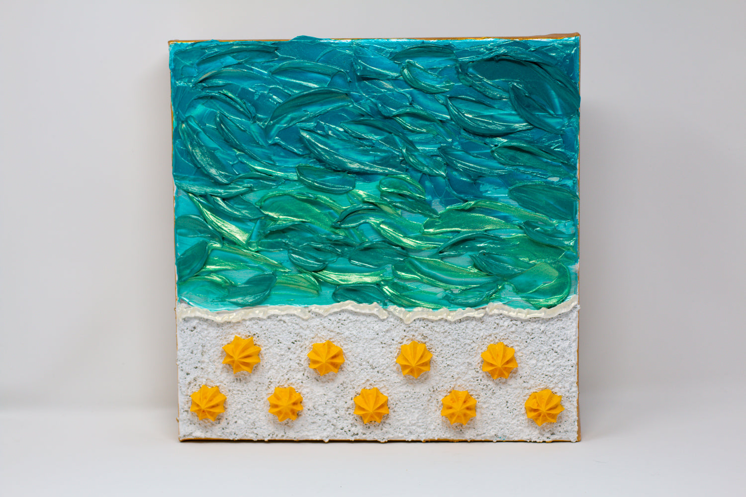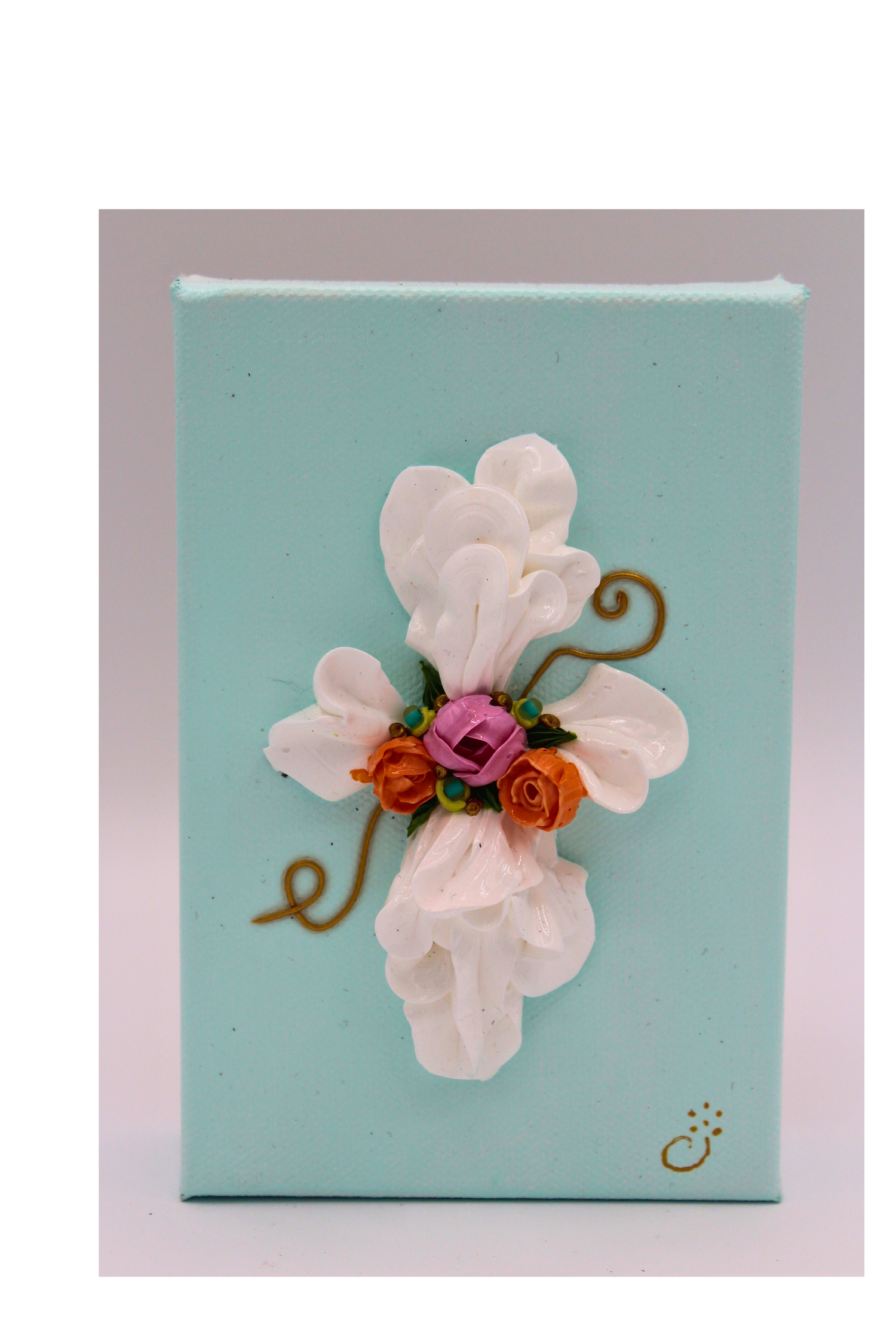 bright + colorful mixed media art featuring florals, crosses, landscapes and abstracts