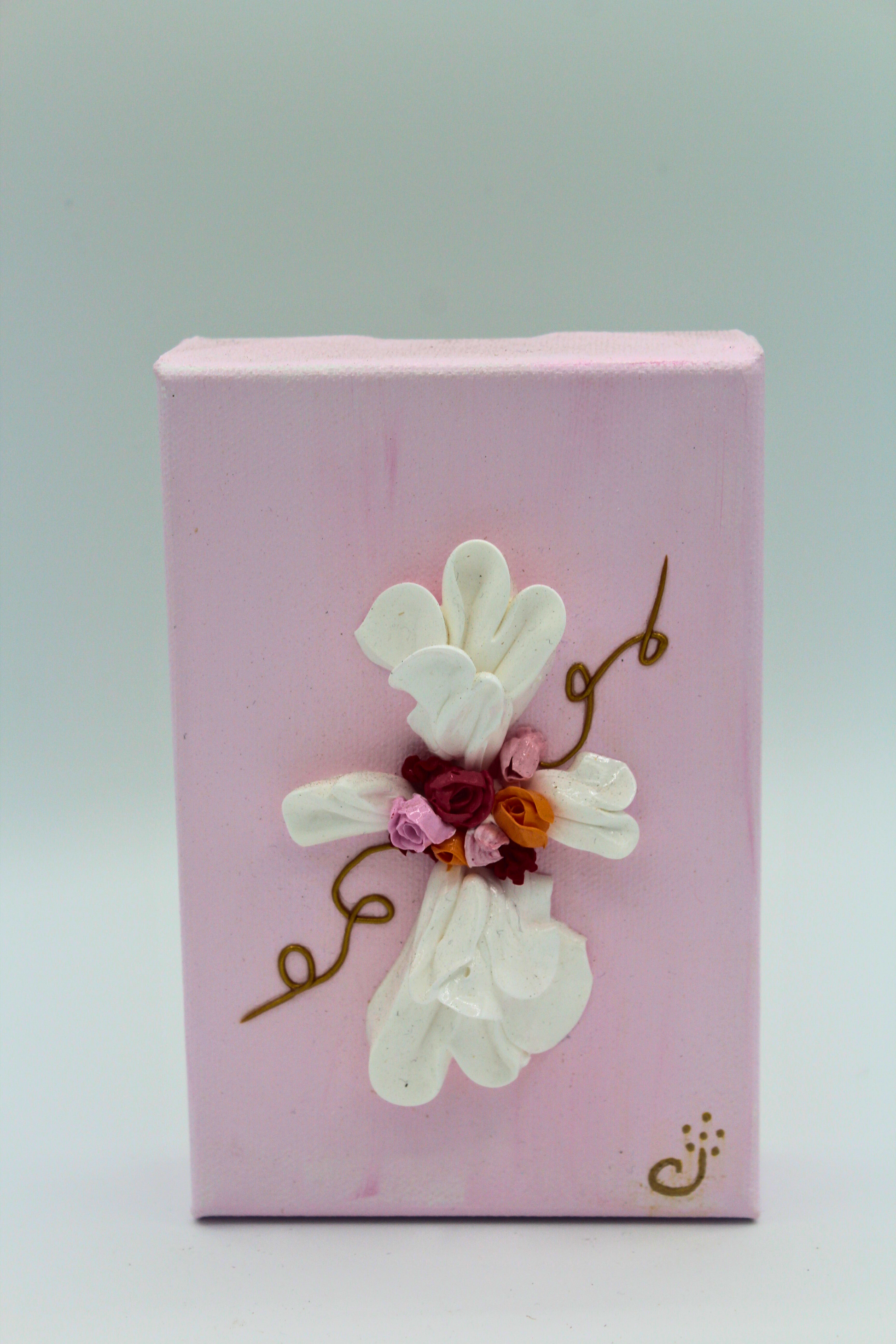 Floral Devotion is a tender expression of devotion and tranquility, captured through sculpted florals arranged in the form of a delicate cross. This piece has smooth, flowing white petals that radiate purity and spiritual calm, gracefully intertwined with golden swirls that weave in soft, lyrical curves — symbolic of life’s journey and divine connection.