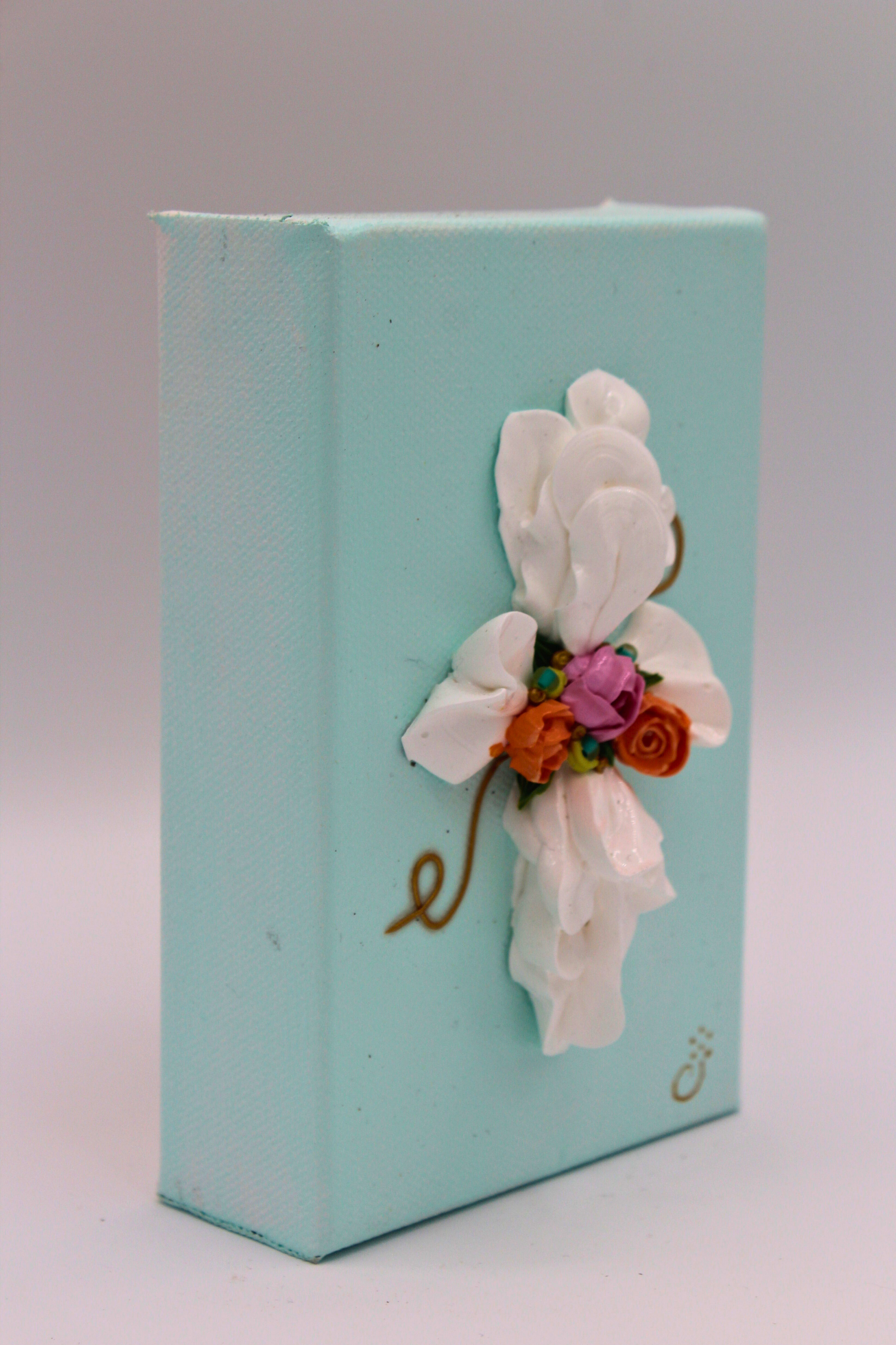 Set against a tranquil seafoam canvas, Whispers of Grace radiates calm and optimism. The artist’s meticulous use of dimension and texture invites touch and introspection, transforming a simple floral motif into a celebration of light, hope, and the beauty of small details.